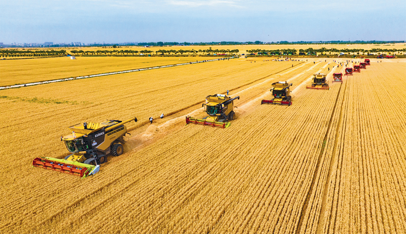 2024年,我国粮食出产迈上新台阶,初次冲破1。4万亿斤,农业分析出产能力不竭提拔,国度粮食平安根底日益夯实。图为2024年5月29日,正在河南省驻马店市西平县老王坡高尺度农田,机收编队正在收成小麦。“村字号”群众体裁勾当兴旺成长,农村移风易俗深切开展,农人群众风貌持续提振。党组织带领的自治、、德治相连系的村落管理系统逐渐健全,党建引领下层管理效能进一步提拔,安然村落扶植无力推进,农村社会不变平和平静。