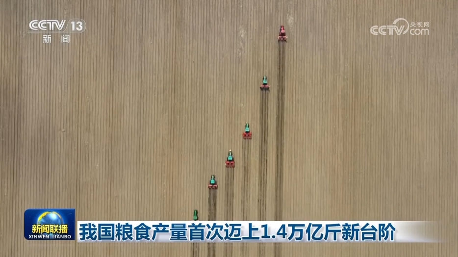 ():国度统计局12月13日发布,2024年全国粮食总产量达14130亿斤,正在持续9年不变正在1。3万亿斤以上的根本上,初次迈上1。4万亿斤新台阶。本年,各部分齐抓共管,亿万农人辛勤奋做,降服了较为严沉的天然灾祸等晦气影响,配合鞭策实现了粮食高位减产。粮食出产呈现出头具名积添加、单产添加、总产添加的凸起亮点。