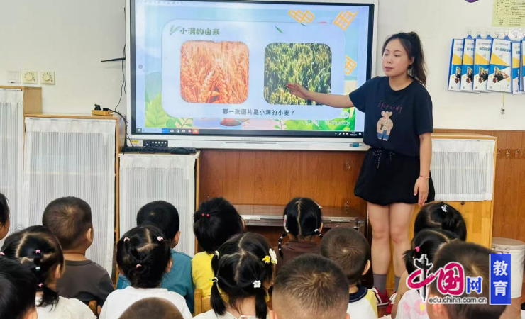 勾当伊始,孩子们认实倾听教员讲述“小满”的来历。教员借帮图片、视频等形式,活泼引见了小满节气的由来、气候、节气物候及相关习俗,正在“歌小满”环节,“小满,小满,孩子们跟从教员歌唱,深刻体味到农人伯伯劳做的不易,大白要好农做物免受天然灾祸。